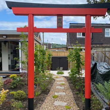 These include Acers, verbs, cherry trees and bamboo. Walk through the traditional Torii gate, where you can meander through the planting towards a peaceful pond with brightly coloured Shubunkin fish.