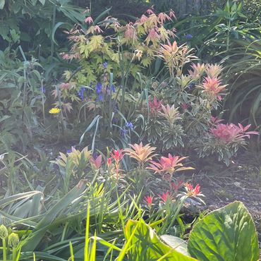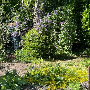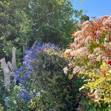 A unique water harvesting system covers most of our garden’s needs. Apart from one, all tanks are interconnected. Many plants arrived by nature. Generally speaking, such plants are welcome, hence the name “Wild Garden”. There are plenty of seats to rest your weary feet.