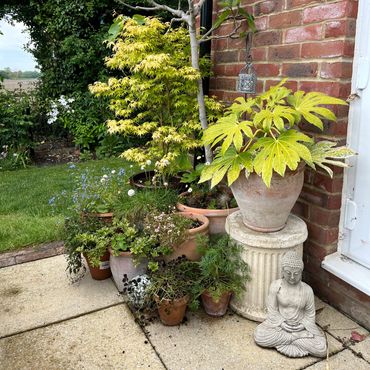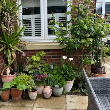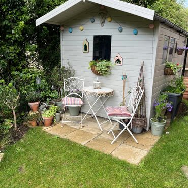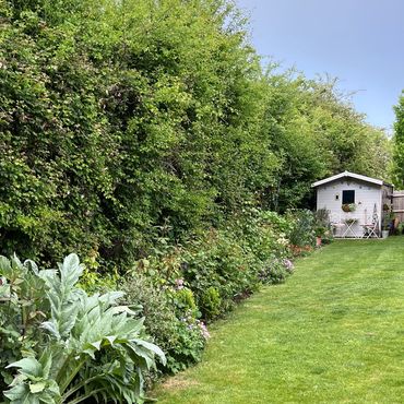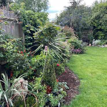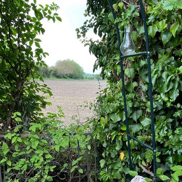 The garden has been created from new, over the last few years. A typical English garden, incorporating a large variety of roses, climbing plants and perennials. There is a greenhouse and a variety of seating areas, enabling views across the garden and over the fields beyond. Wheelchair access, dogs in arms are fine.
